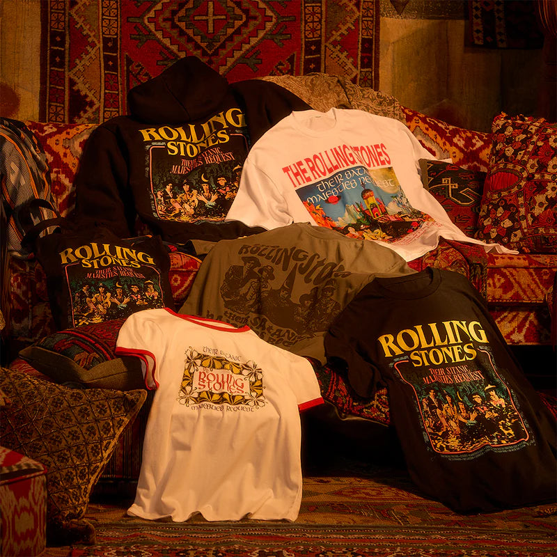 Don’t head out the door this season without layering up with a piece of Rolling Stones outerwear. Various styles include a hoodie, crewneck, and coaches jacket featuring new and classic Stones imagery.
