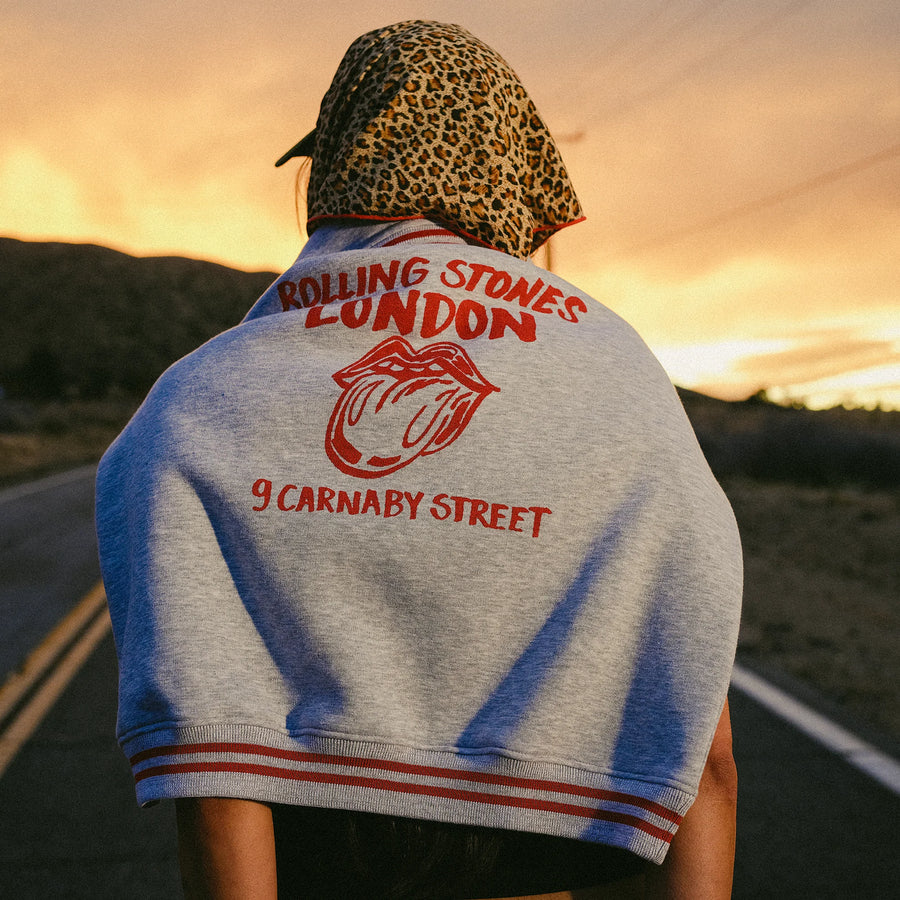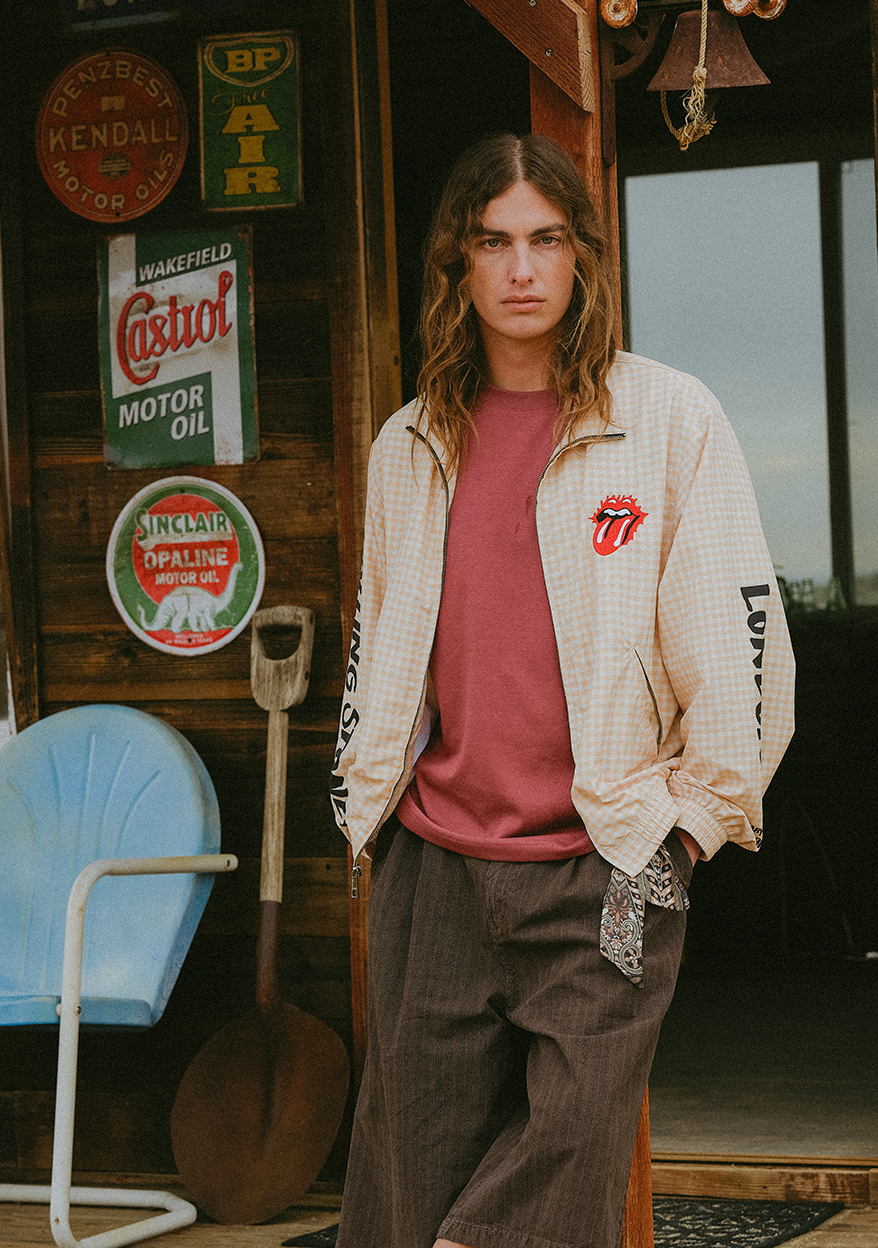 The Rolling Stones Natural Check Harrington Windbreaker Jacket