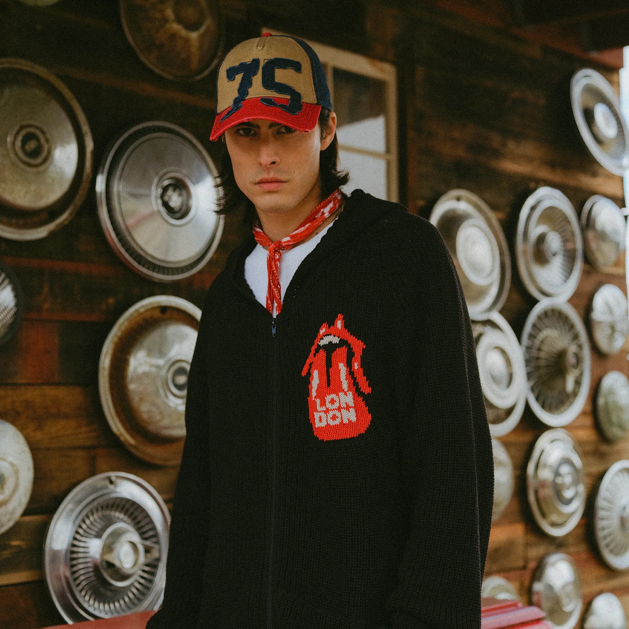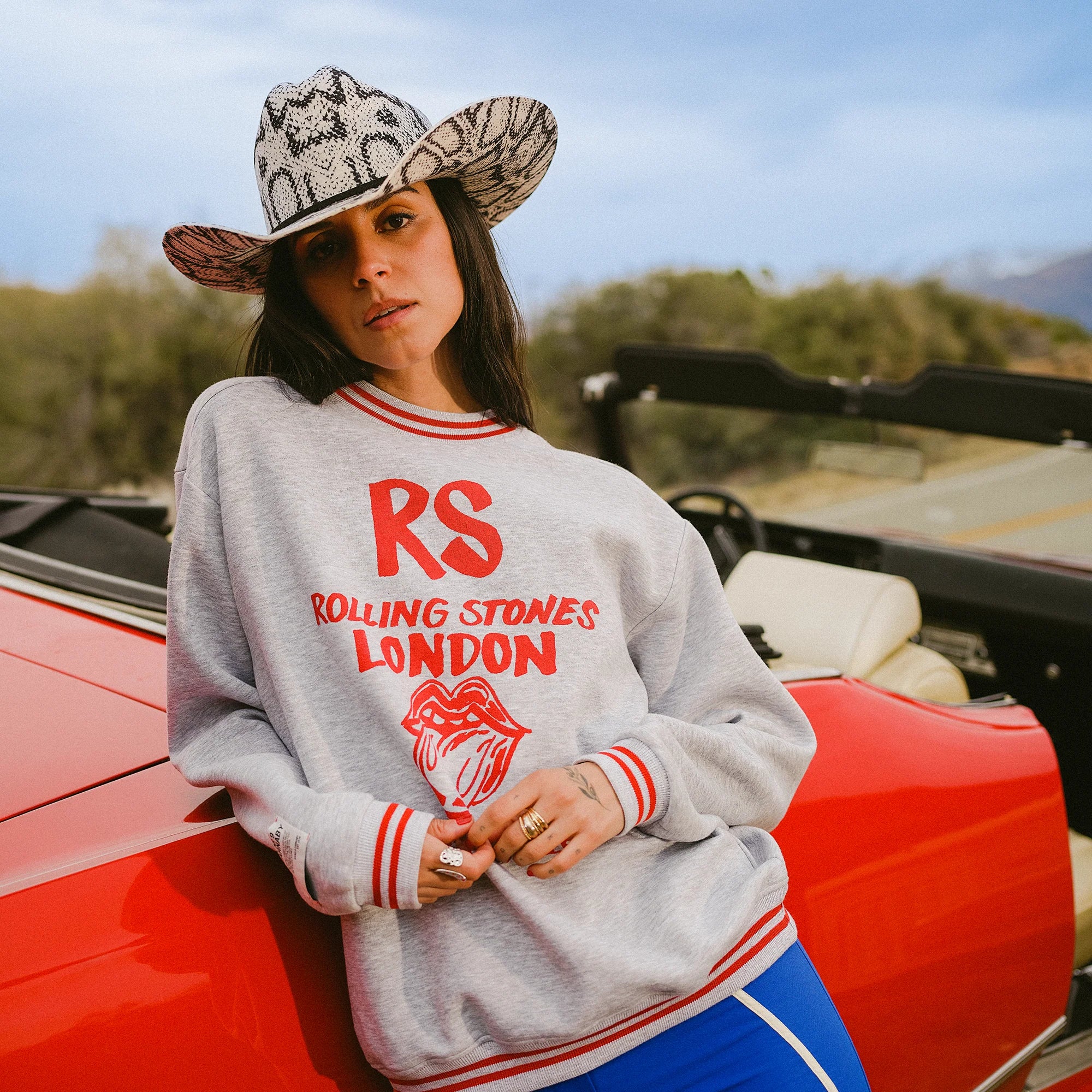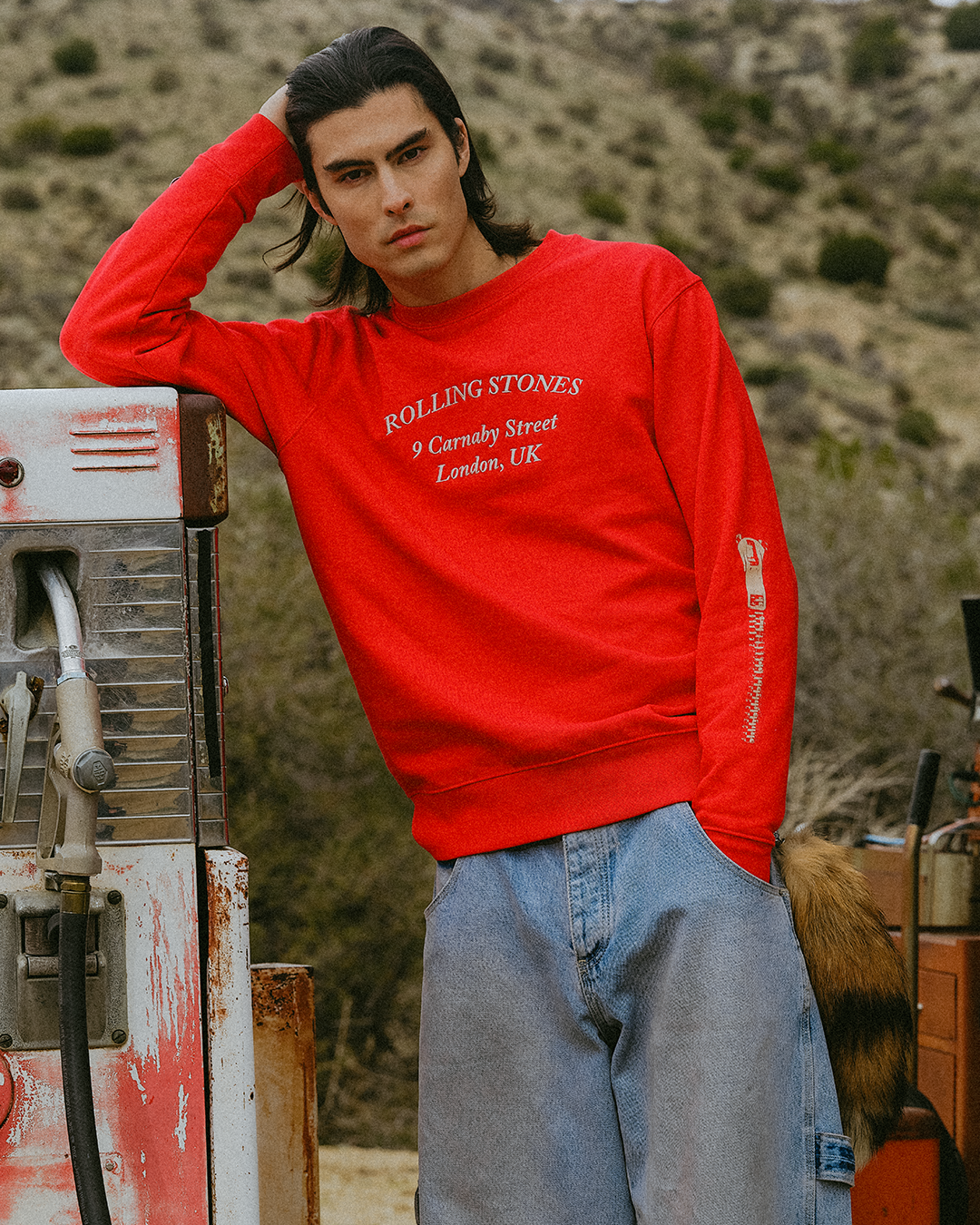 Rolling Stones Zipper Sleeve Red Crewneck Sweater