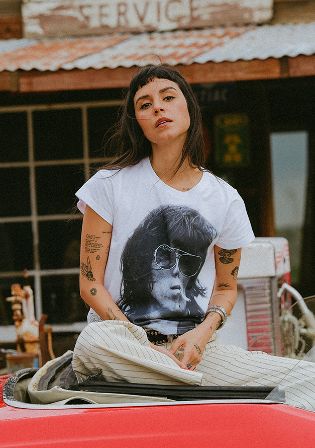 Jumbo Print Keith Smoking Photo White Baby Tee